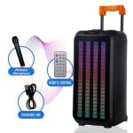 امکانات اضافی: میکروفن داخلی، ریموت کنترل، نورپردازی RGB و نمایشگر LED از دیگر ویژگیهای جذاب این اسپیکر هستند.
